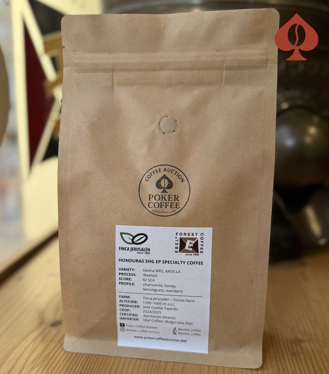 Gesha Washed Mrs. Ardilla je svěží a hravá. Má lehké, jasné tělo, v němž se odkrývá něžná květinová nota heřmánku, citrusová živost citronové trávy, šťavnatý akcent mandarinky a hřejivý dotek medu. Dozrává na horské farmě Finca Jerusalén, obklopená pralesem, šelestem korun stromů a pod bystrou ochranou své patronky – Mrs. Ardilly.